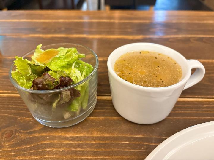 サラダとスープがセットで付いてくるのも嬉しいポイントです。