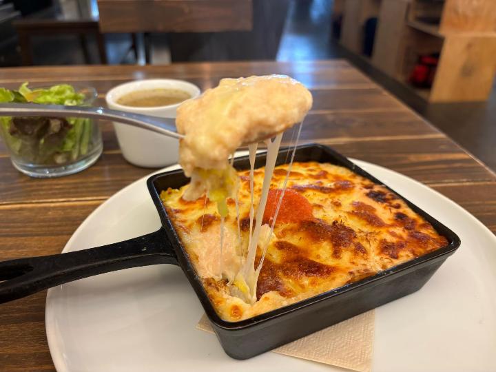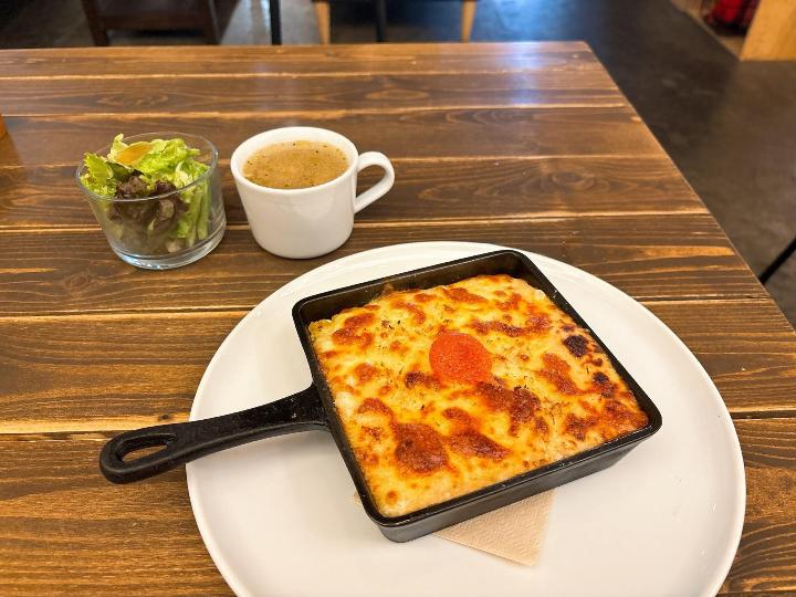ドリアはアツアツのスキレットで運ばれてきて、見た目から食欲をそそられました。