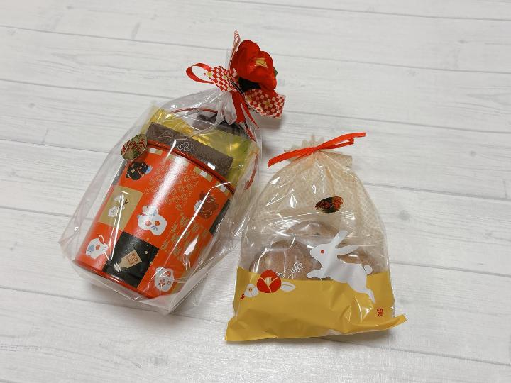 華やかな包装なので、新年のご挨拶や、家族が集まるお祝いの席に持っていくと、きっと喜ばれますね。