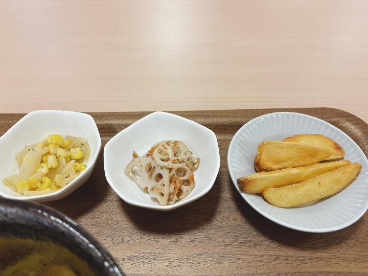 好きな小鉢を3つ選べるスタイルで、ソテーや和え物、サラダなどいろいろあり、迷ってしまいます。