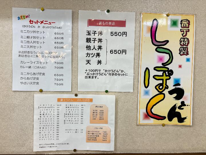さぬきうどん番丁のメニューはこのようになっています。(一部)