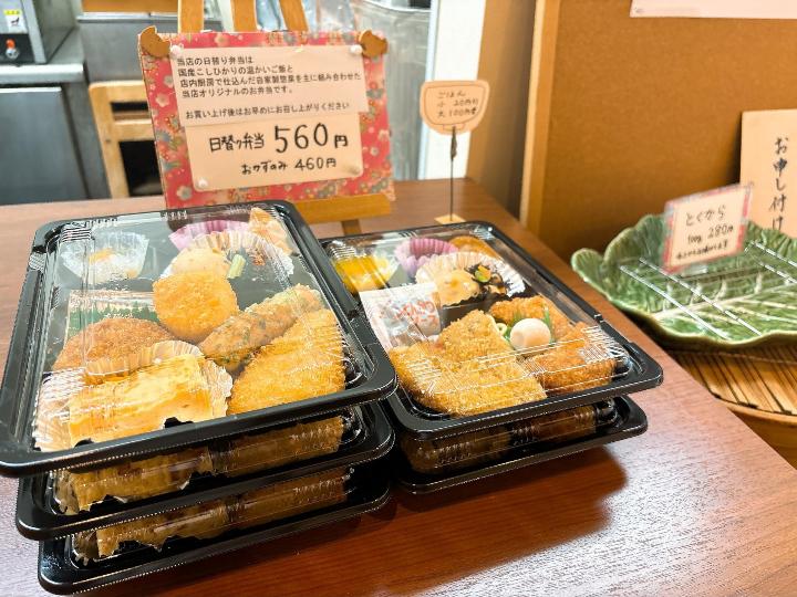 唐揚げや煮物など、ちょっとしたおかずもあり、家庭の味を手軽に楽しめるお店です。