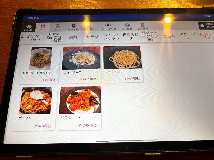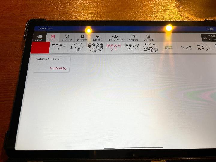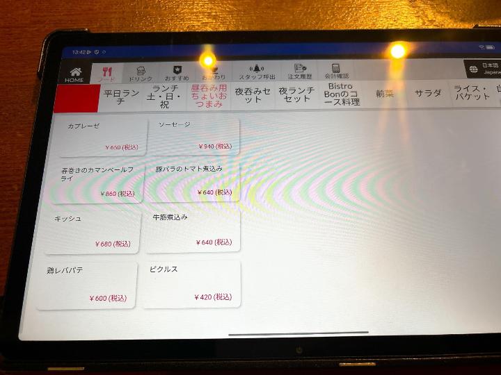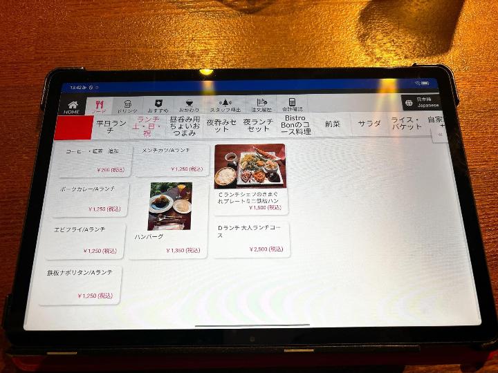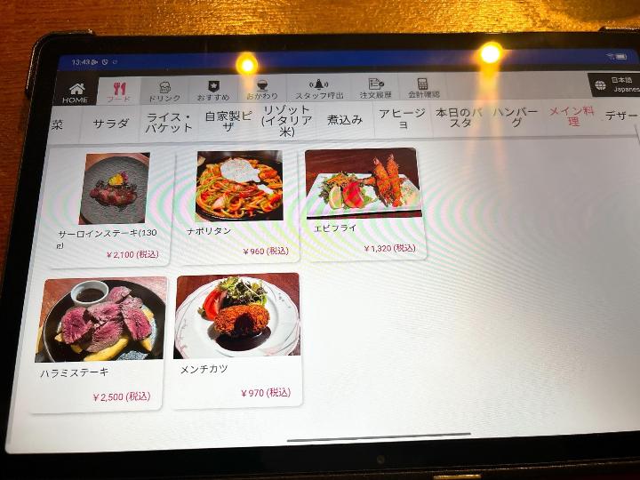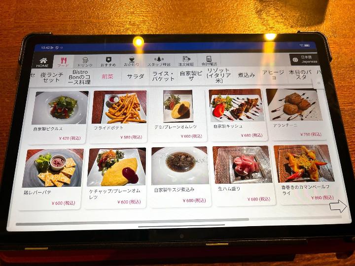席に着くと、注文はタブレットから行うスタイルでした。