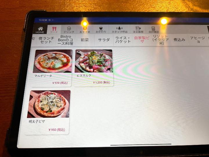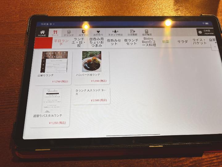 ビストロボンのメニューはこのようになっています。(一部)