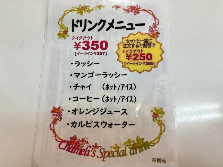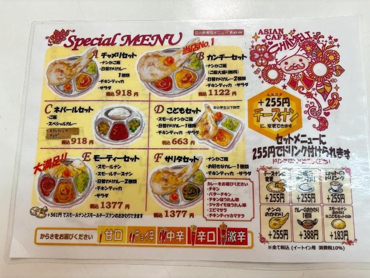 AsianCafe チャメリのメニューはこのようになっています。(一部)