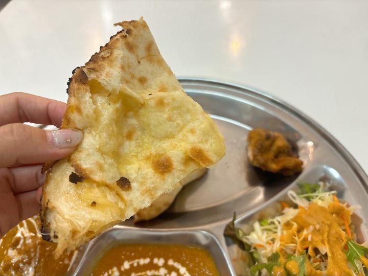 変更したチーズナンも、中からチーズがとろりと伸びて、カレーとの相性が抜群でした。