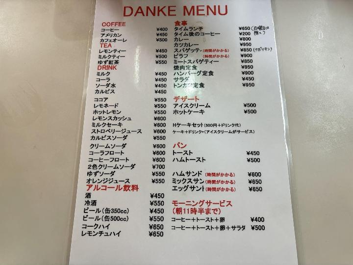 ダンケのメニュー