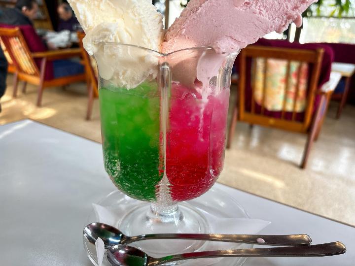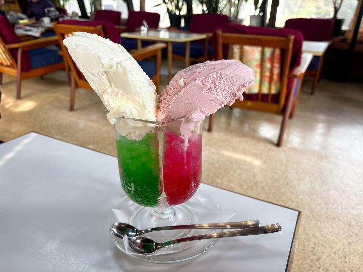 そして楽しみにしていた2色クリームソーダは、見た目がとてもかわいくて印象的でした。