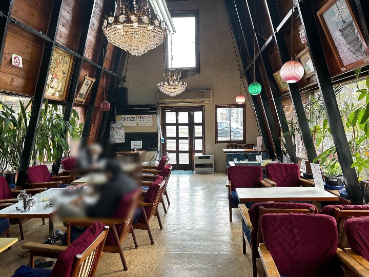 中に入ると天井が高くて開放感があり、昔ながらの喫茶店らしい落ち着いた空間でした。