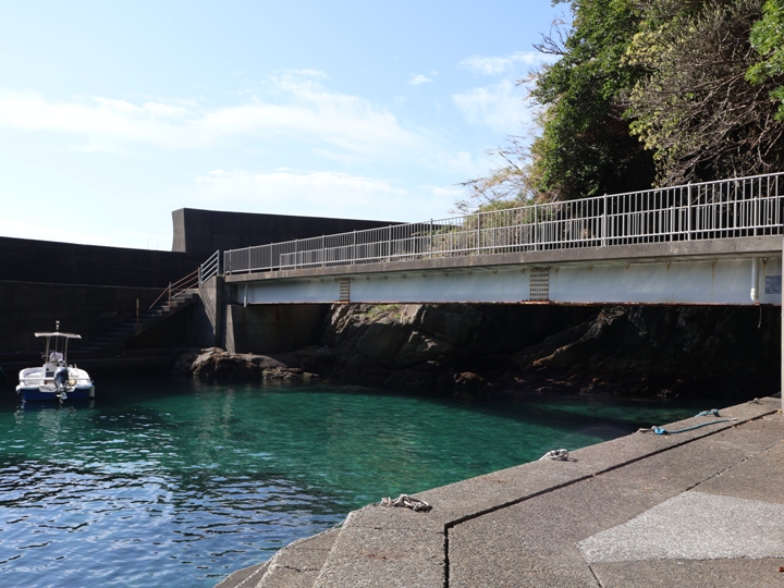 静かな漁港の中を歩いていくと、小さな橋が見えてきます。