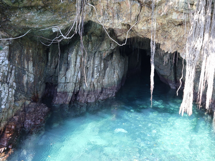 海にぽっかりと開いた洞窟の中に、朝の光が差し込むことで海の色が青く輝くことで知られています。