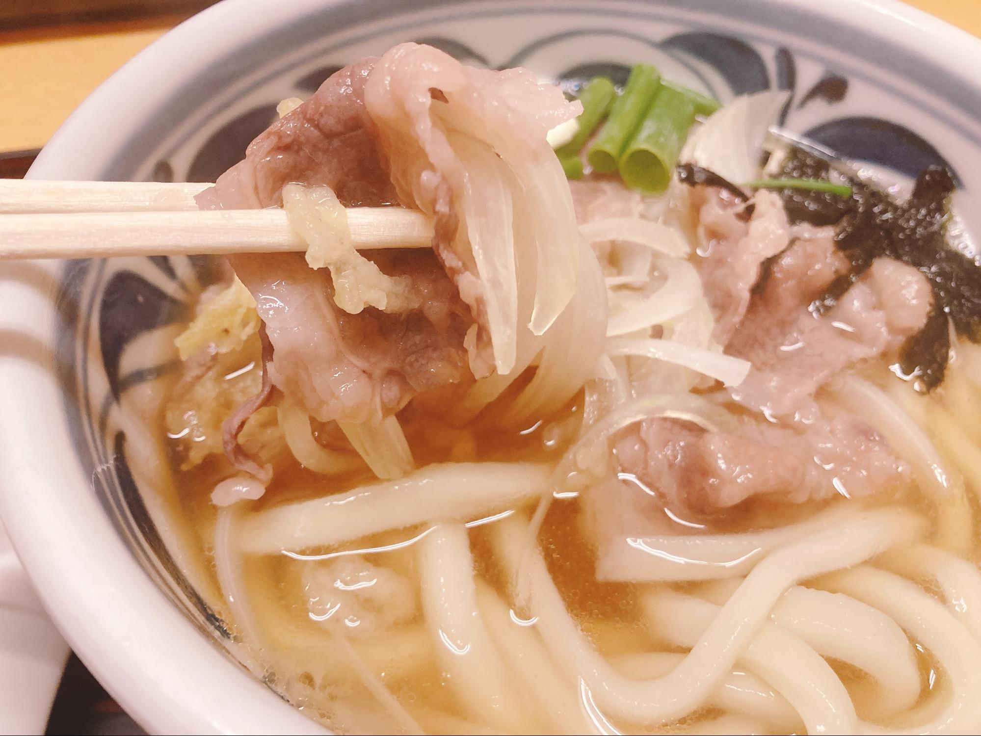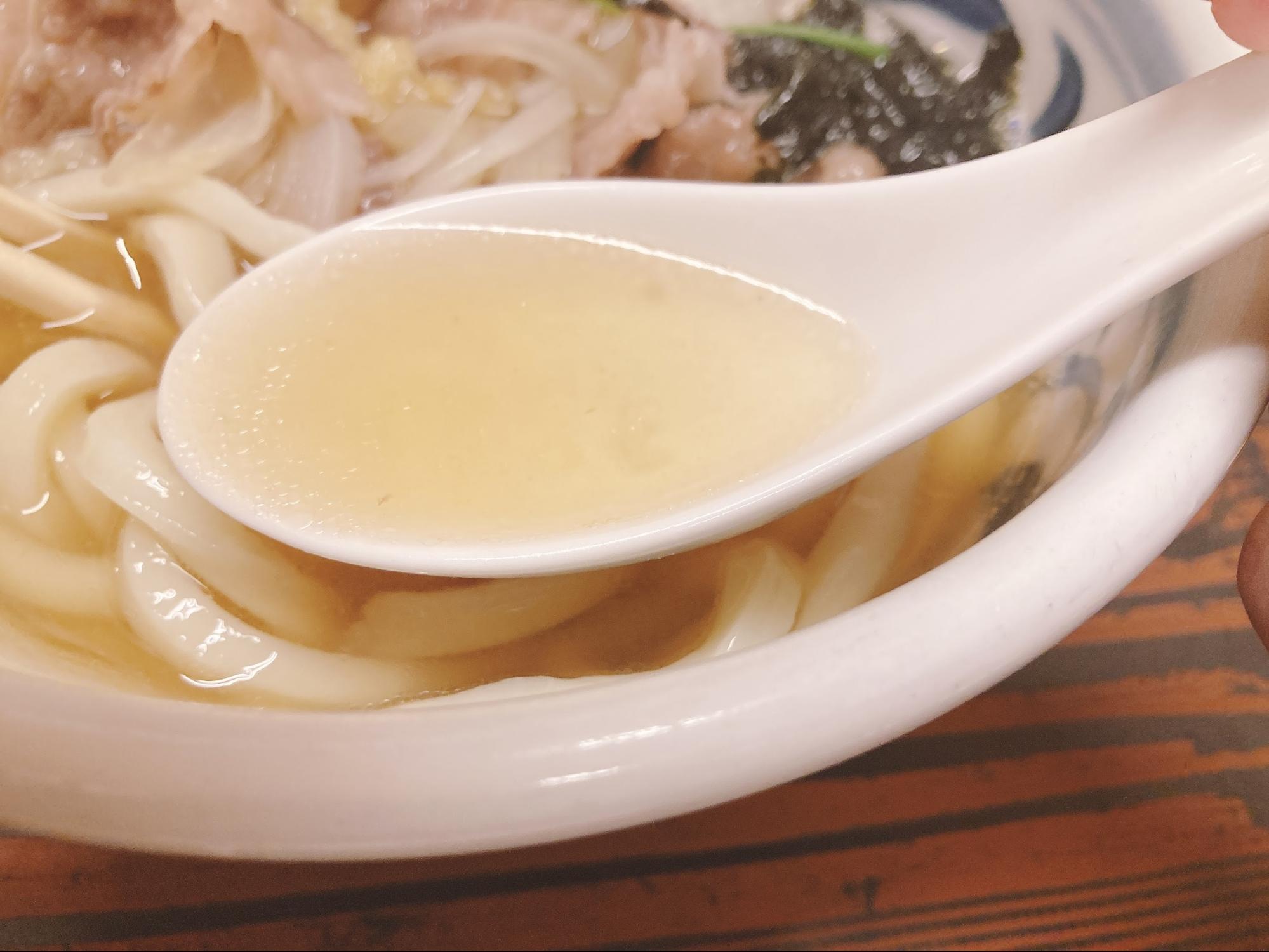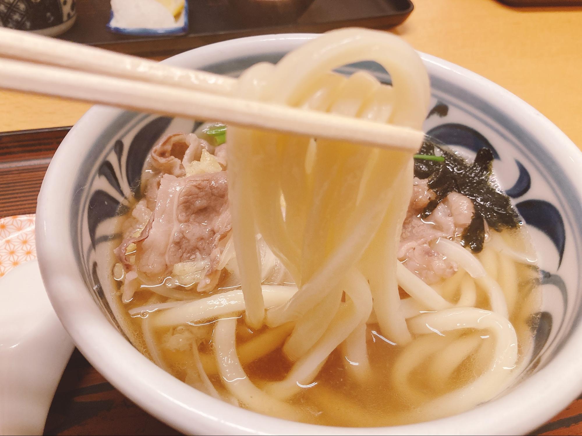麺はコシがありツヤツヤしていました。うどんにレンゲがついているのは珍しいですね。