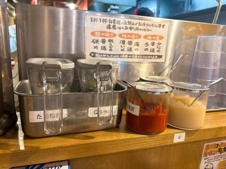 食券を店員さんに渡すと、麺の硬さ・タレの量・脂の量を聞かれます。