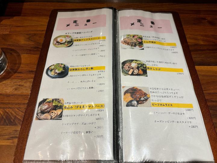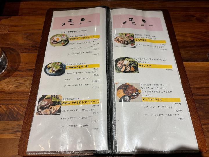 今回は初めてだったので、定番メニューの中から選び、「オリーブ牛鉄板ハンバーグ・自家製デミグラスソース(税込1,480円)」を注文。