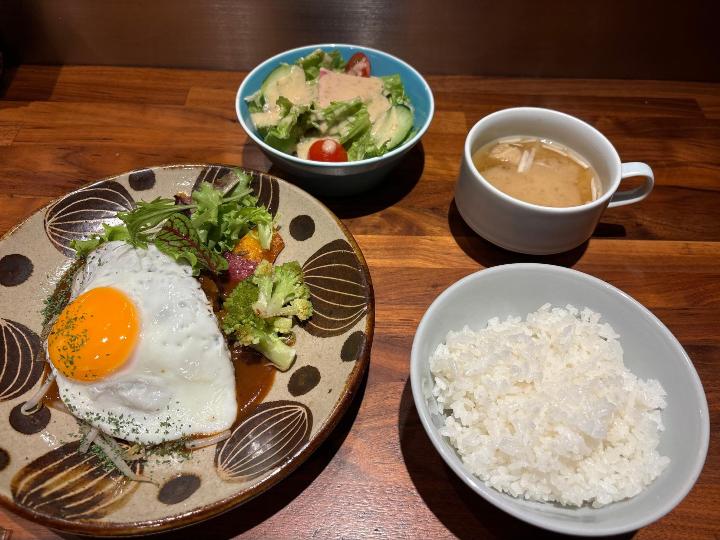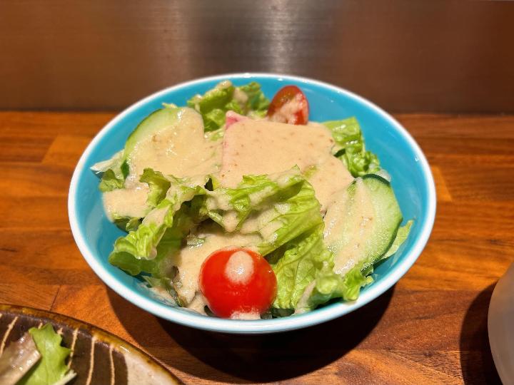 セットのサラダも新鮮でおいしく、さっぱりと食べられます。