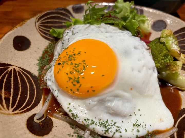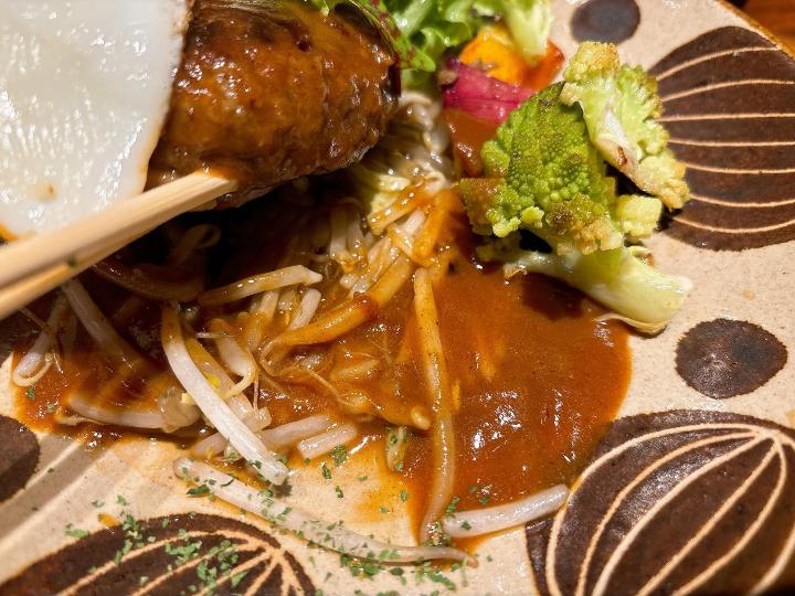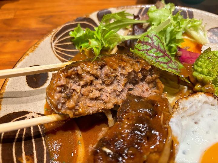 ハンバーグはふっくらとしていて、デミグラスソースがたっぷり。