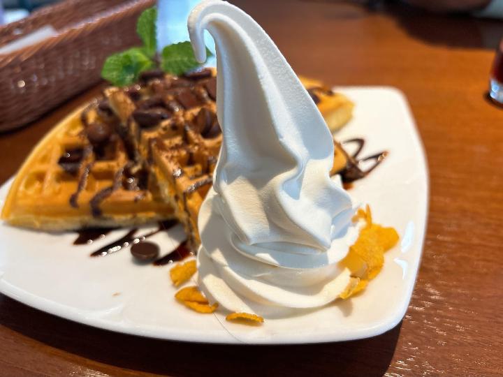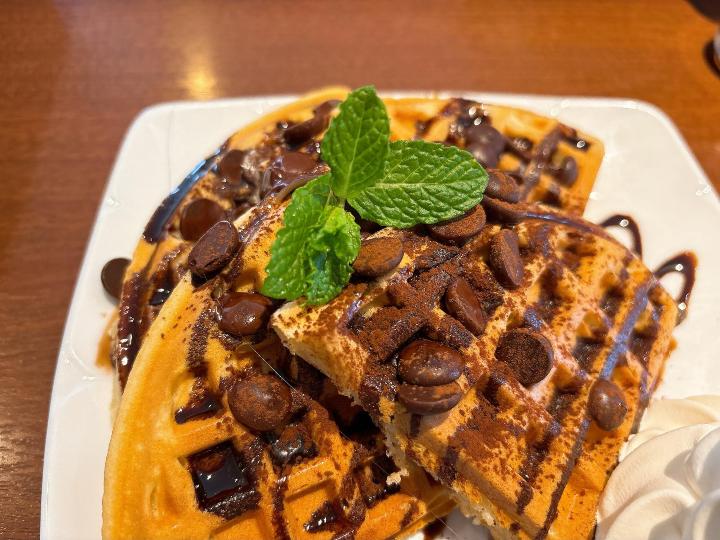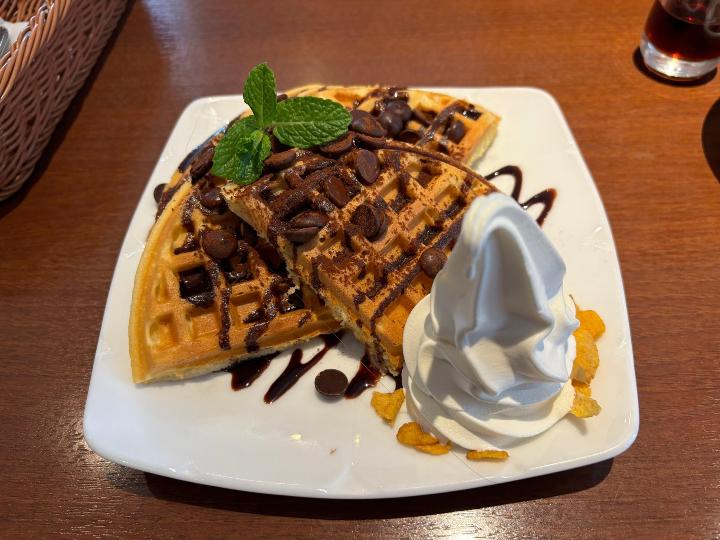 娘は「チョコ&チョコチップワッフル(税込1,280円)」を注文。