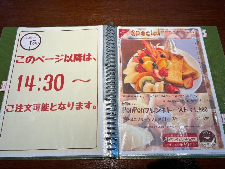 - 14時半からフレンチトーストが注文できる