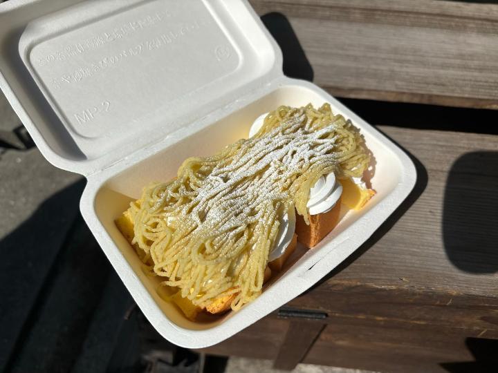 ふわっと軽いシフォンの土台に、やさしい甘さの栗クリーム。目の前で栗クリームをかけてくれます^^