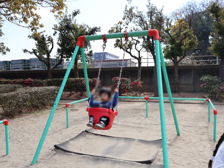 ほかにもブランコがあり、遊具の数は多すぎないですが、ちょうどいいバランスです。