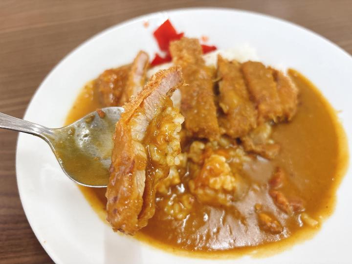 ポークかつは衣がサクッとしていて、カレーとよく合います。