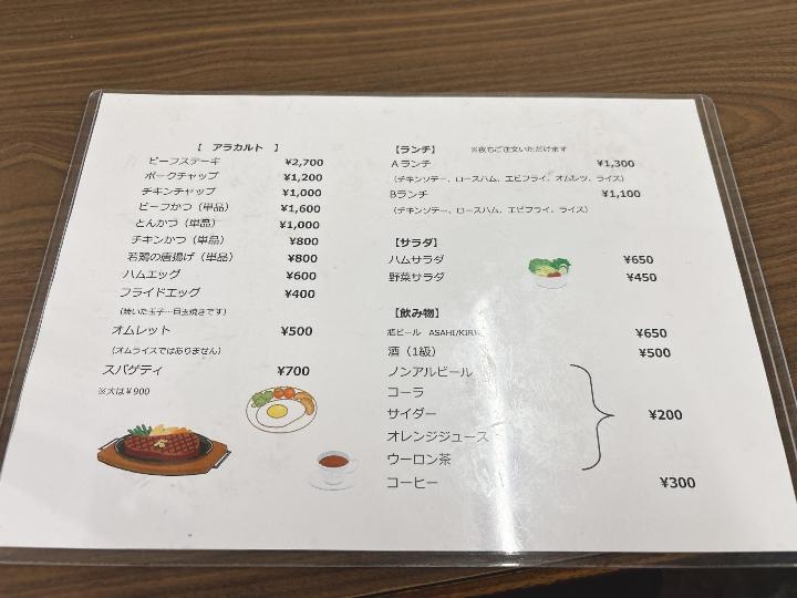 メニューを見てみると、カレーライスやオムライスなどの洋食メニューを中心に、定食や丼ぶり、中華そばまでそろっています。