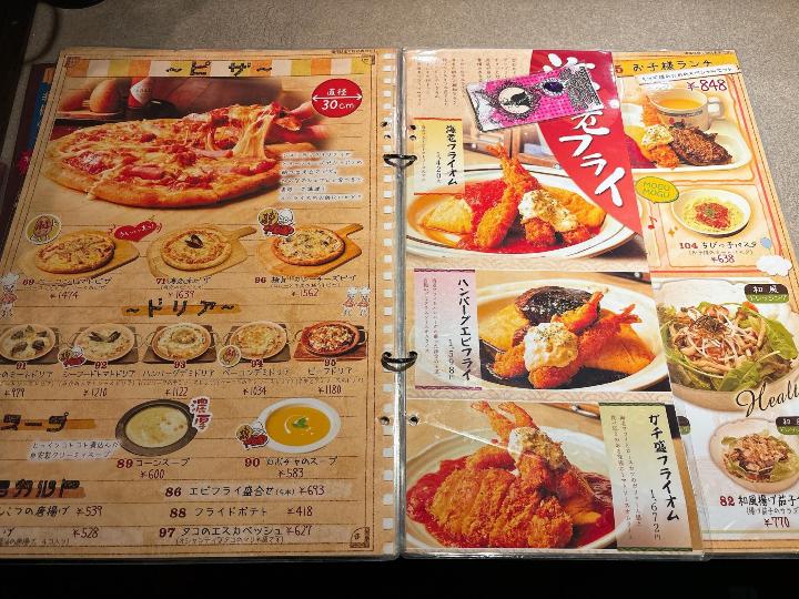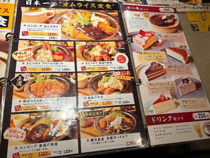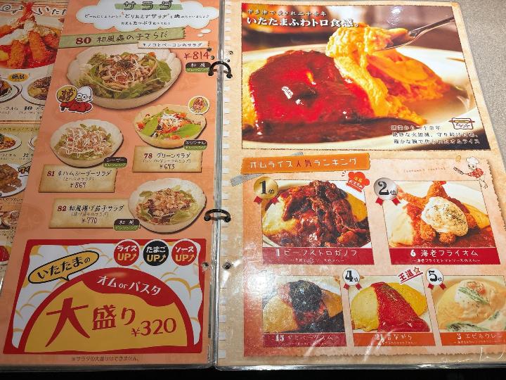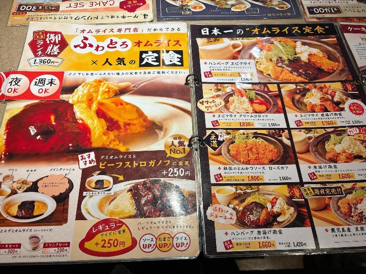 こちらのお店は、オムライスだけでなく、定食やセットメニュー、パスタ、ドリア、ピザなど種類がとても豊富です。