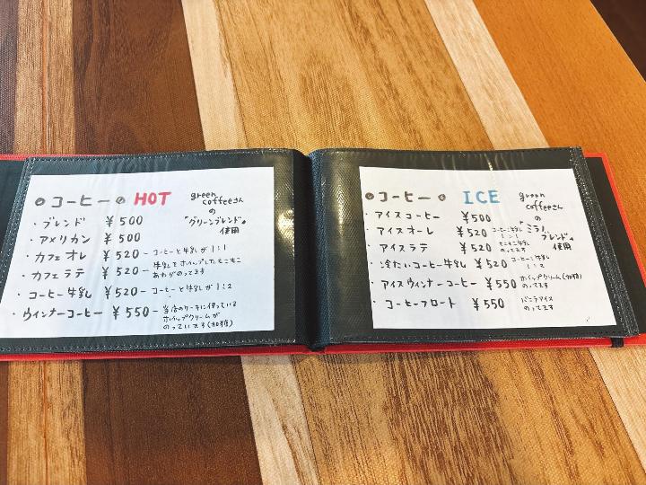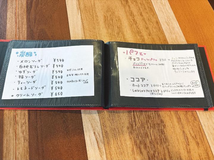 ジャンヌダルクカフェのメニューはこのようになっています。(一部)
