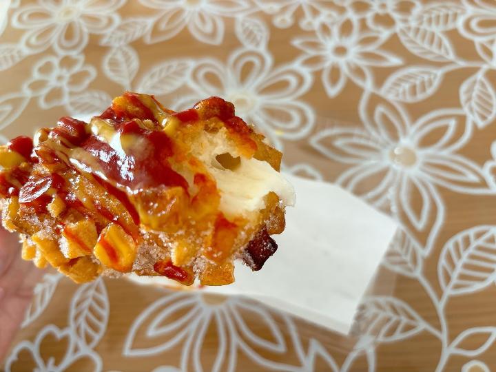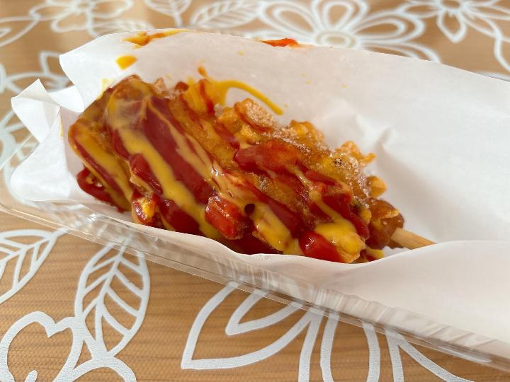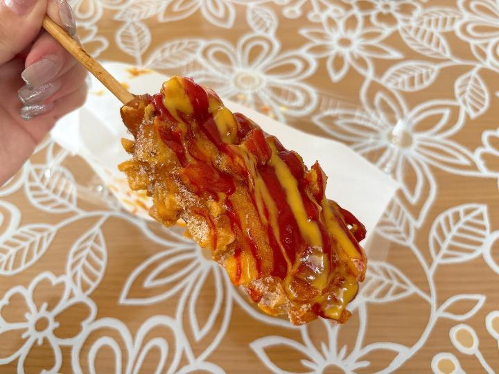サクサクで甘いチーズハットグは満足感があり、スナック感覚で食べられる手軽さで、おやつにはもちろん、ちょっと小腹が空いた時にもちょうどいいボリューム感です。