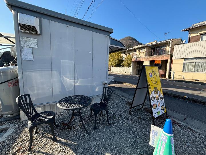 テイクアウトがメインのお店ですが、お店の外にはちょっとしたテーブルと椅子も用意されていました。