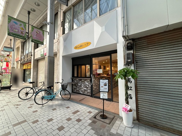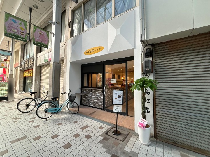 「K-Café ハナ」は商店街の人通りの多い場所にあり、ふらっと寄れる気軽さがあります。