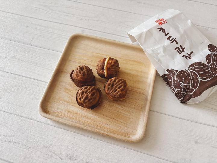 韓国では昔から親しまれているお菓子で、胡桃の形をしているのが特徴です。