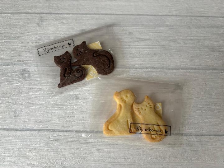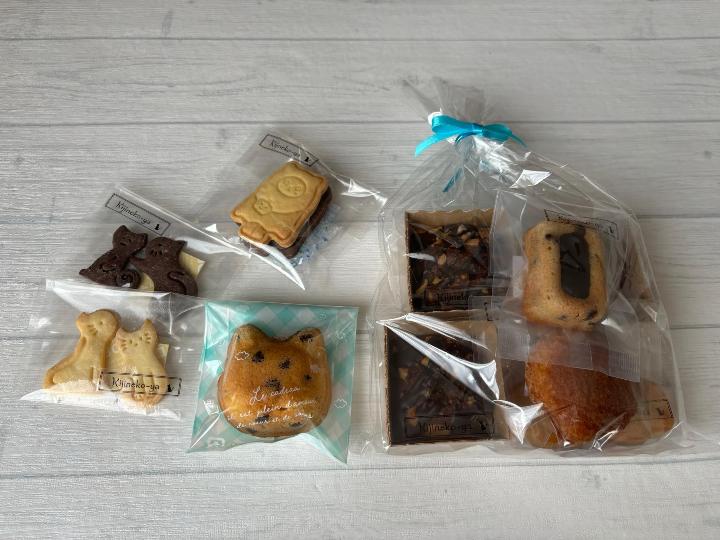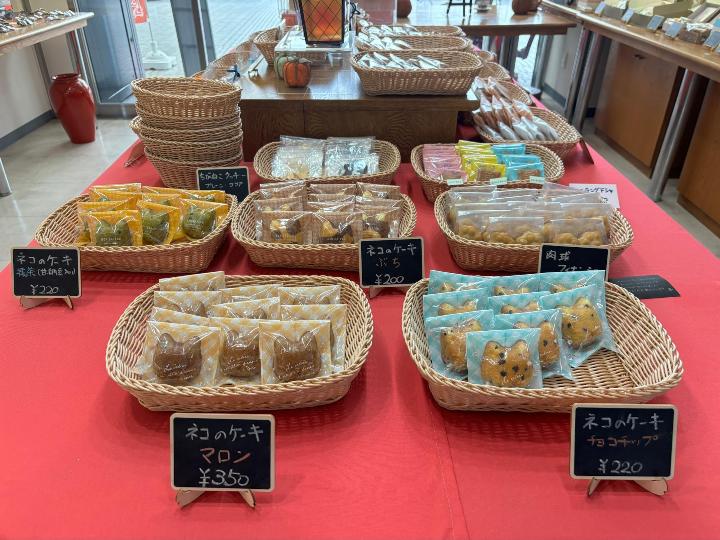 お菓子が並んだカウンターを見てみると、猫の形をしたクッキーや焼き菓子が並んでいました。