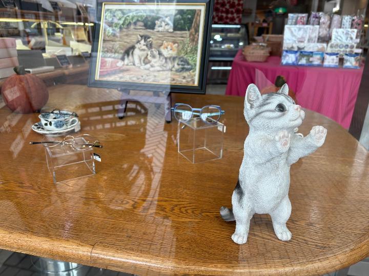 その隣の棚にはおしゃれなメガネのディスプレイ。