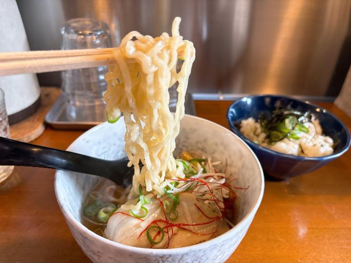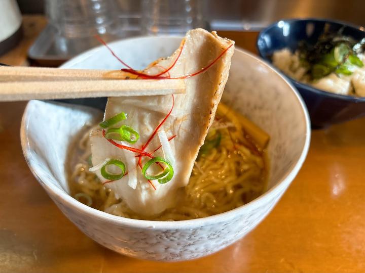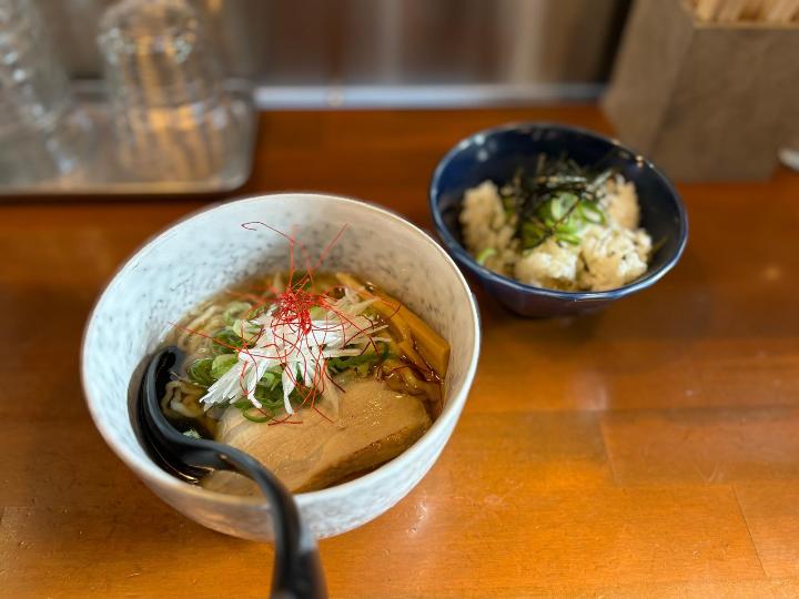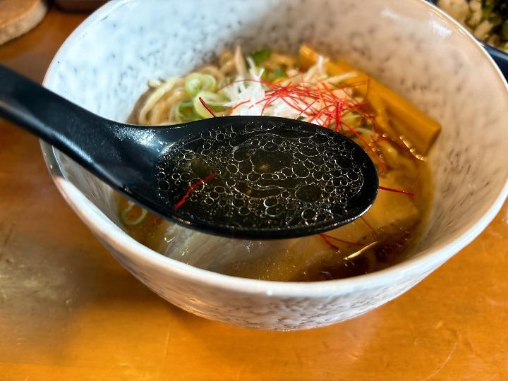 ラーメンのスープは、鯖節と厳選した香川の醤油を使った淡麗魚介スープ。