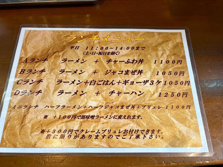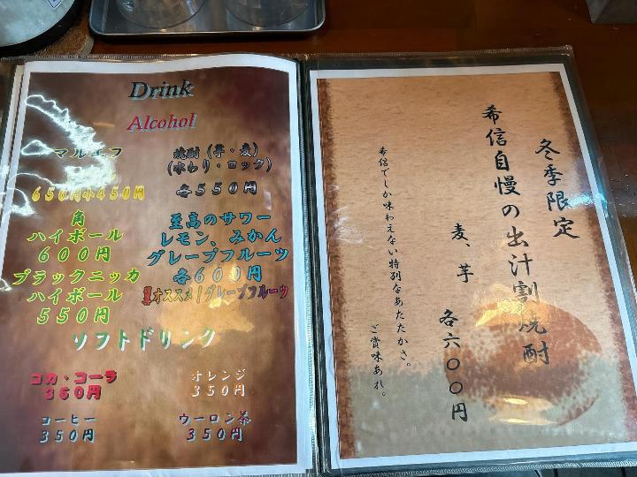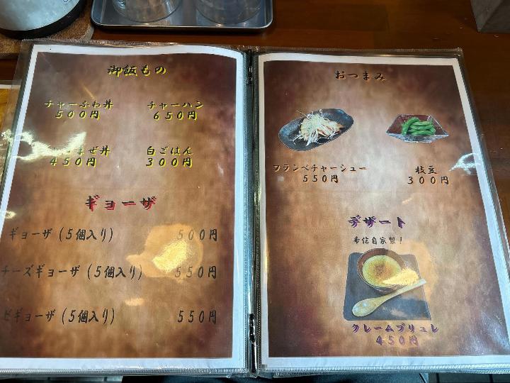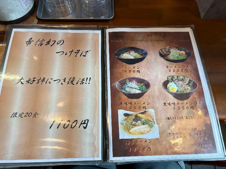 麺処希信(きしん)のメニューはこのようになっています。(一部)