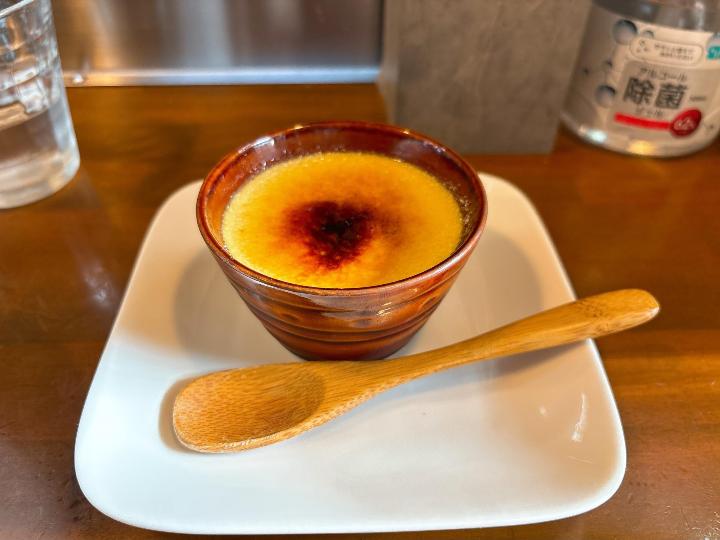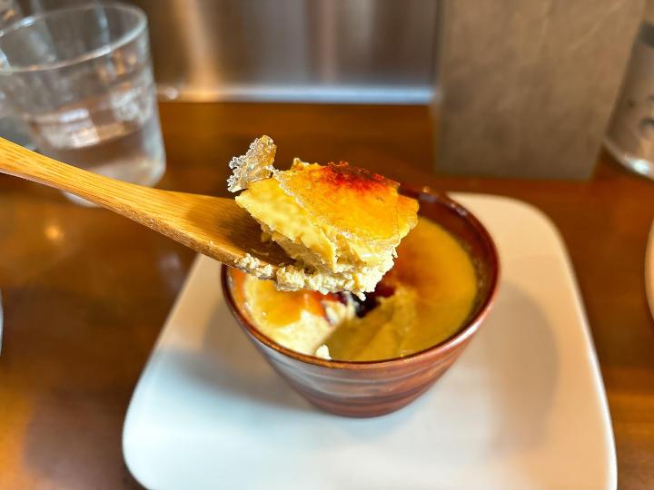 食べ終わると、タイミングよくクリームブリュレが運ばれてきました。