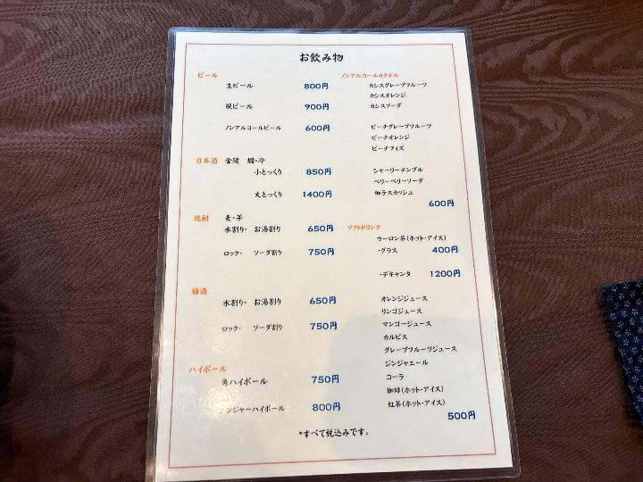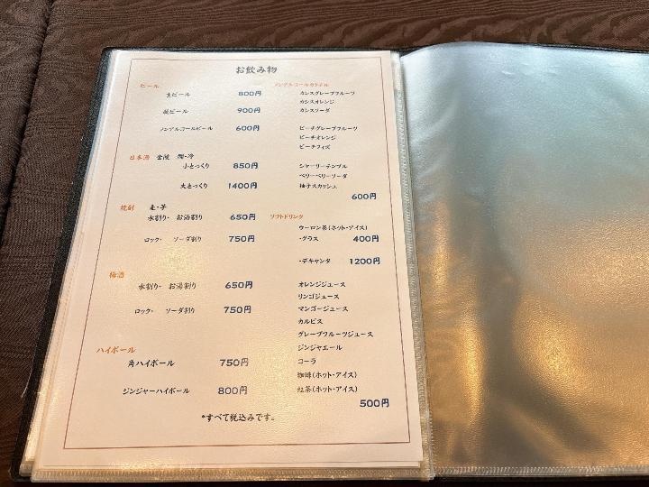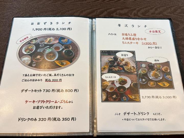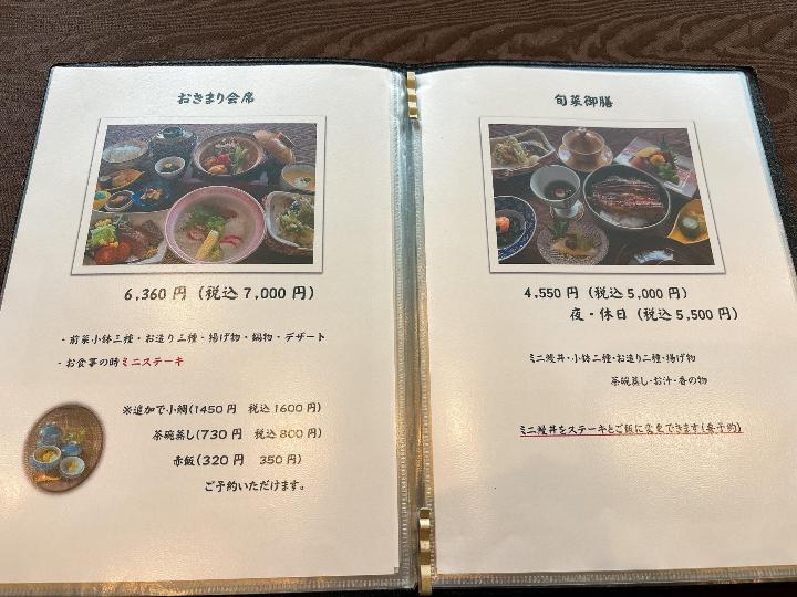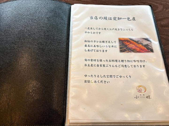 旬菜小蝶のメニューはこのようになっています。(一部)