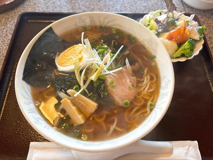 さらに、息子が頼んだ「中華そば」にもしっかりサラダが付いていました。