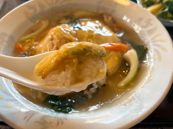 今回は「天津飯」を単品で注文したのですが、運ばれてきてびっくり!