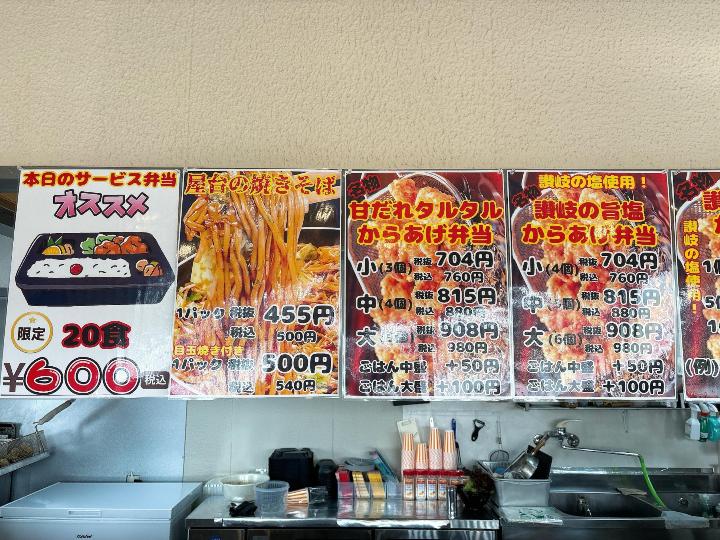 定番のからあげやフライドポテト、やきそば、日替わりのお弁当など、小腹が空いた時のおやつから、しっかり食べたい昼ごはんなど嬉しいメニューがそろっています。