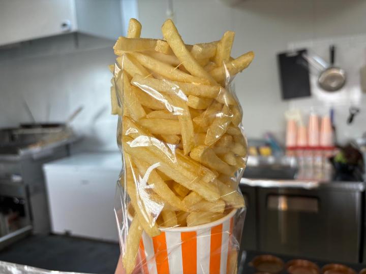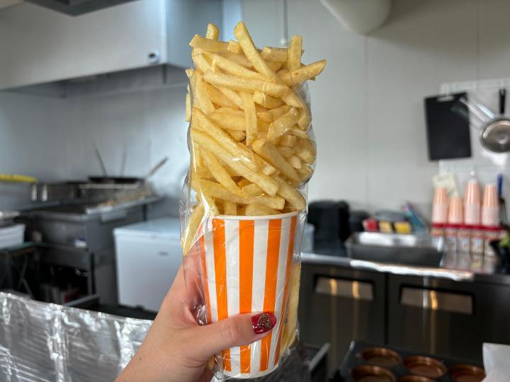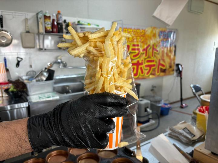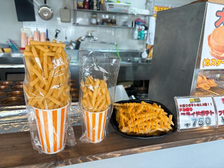 店内に並ぶ食品サンプルの量に惹かれ、今回は「フライドポテトのドカ盛り(税込750円)」を注文しました。