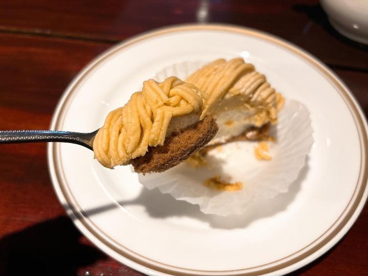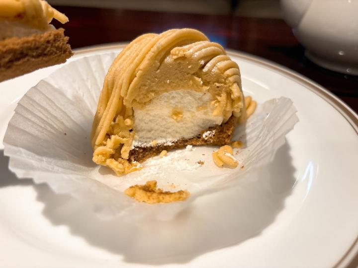 モンブランはしっとりとしたマロンペーストが口の中でほどけるようで、中のクリームとのバランスも良く、甘さが控えめでとても食べやすい味でした。