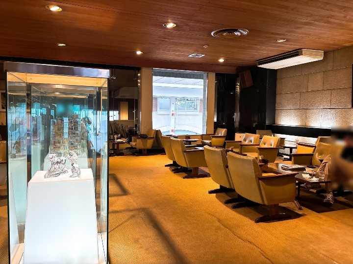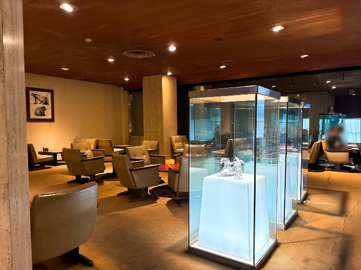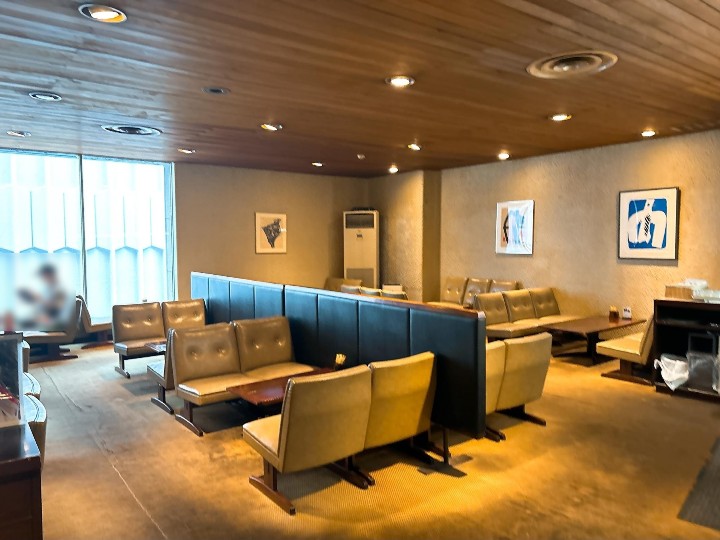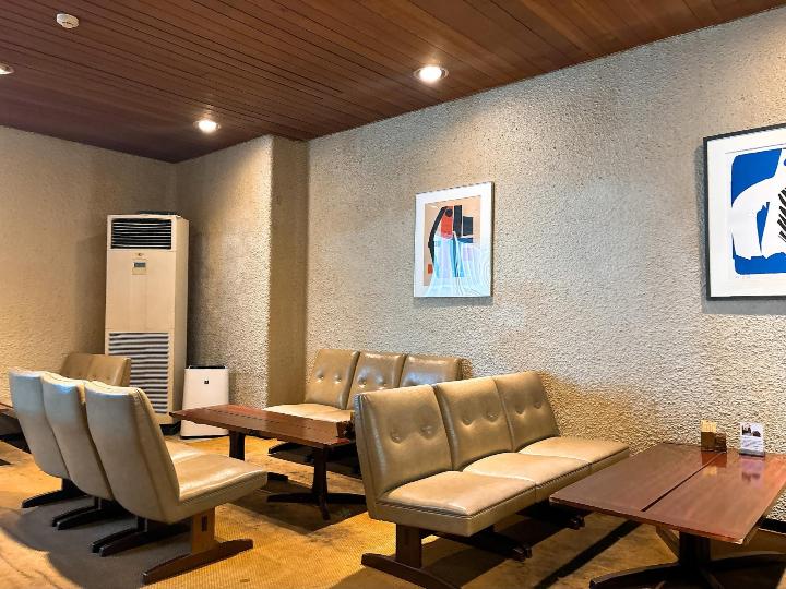 ホテルのロビーのようなテーブルや椅子、そして壁には絵画が飾られていて、静かで穏やかな時間が流れています。
