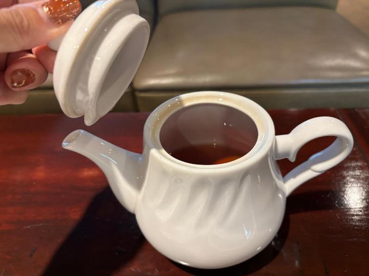 紅茶はポットで提供され、カップとポットを合わせて2杯分ほどあるので、ゆったりと過ごすのに十分な量です。