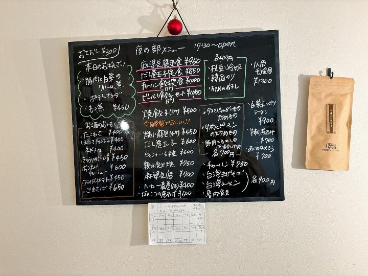台湾茶専門店ランプ屋2号店のメニューはこのようになっています。(一部)