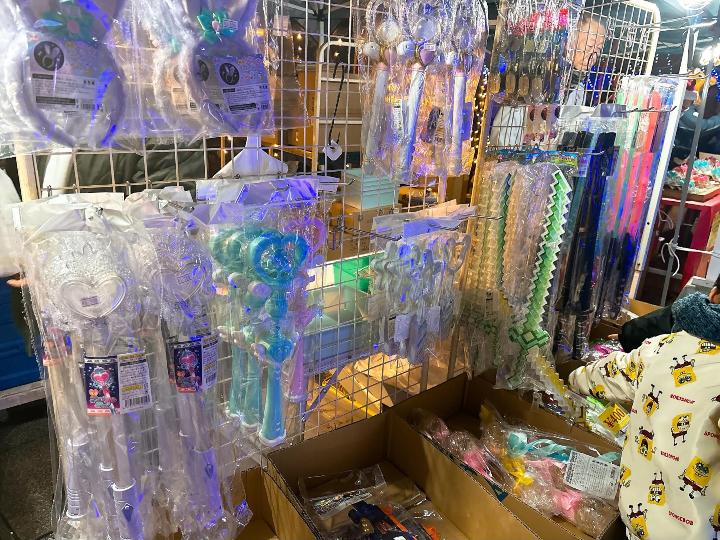 光るステッキやら銃やら刀やらがいっぱい…刀が欲しいと夫に頼みましたが、買ってくれませんでした(´・ω・`)
