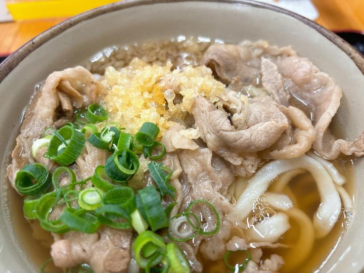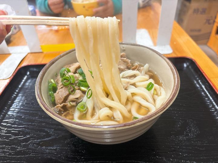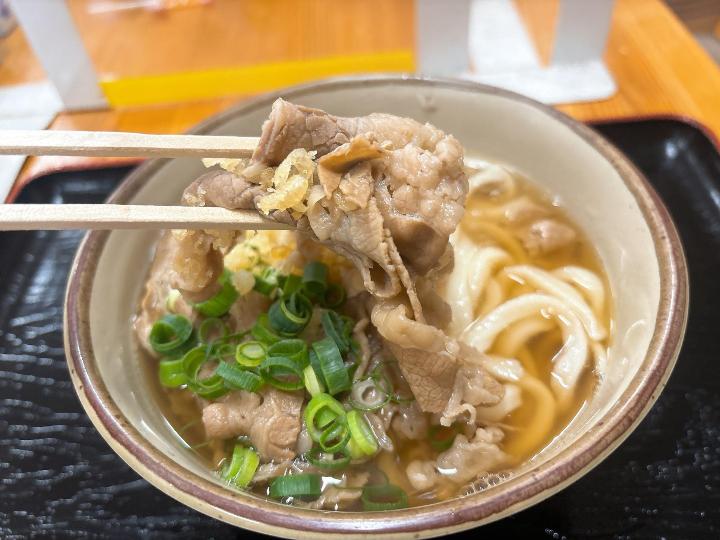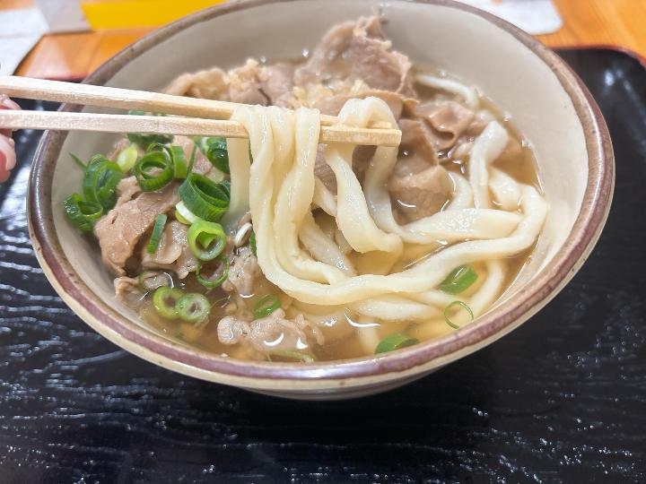肉うどんのお肉は、しっかりとした硬さで食べごたえがあります。