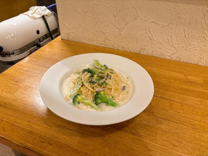 メインは「無添加生ベーコンとブロッコリーのクリームソース(税込1,400円)」。