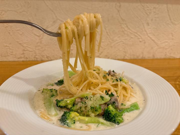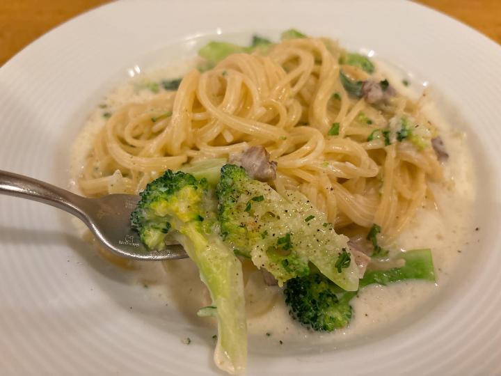 ブロッコリーもソースによく絡んでいて、ひと口食べるごとに幸せな気分になります。